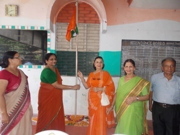 In the morning Mrs. Krishna Shroff and Mrs. Prem Sarin hoisted the national flag and in the afternoon the tricolor was hoisted by Mrs. Sushma Seth. Students of the centre presented a speech and a Patriotic song.